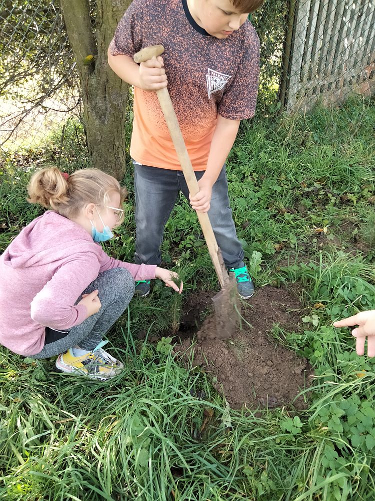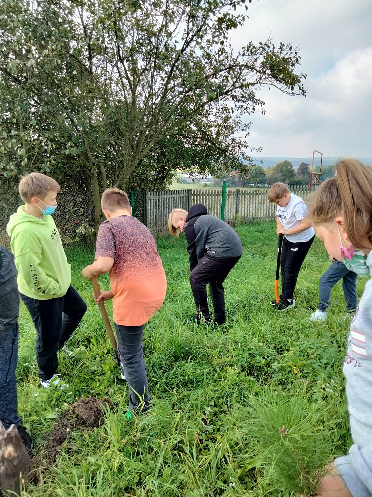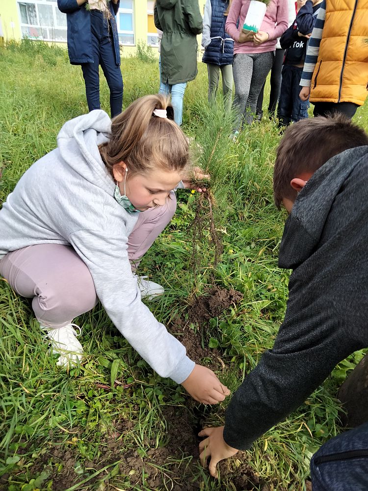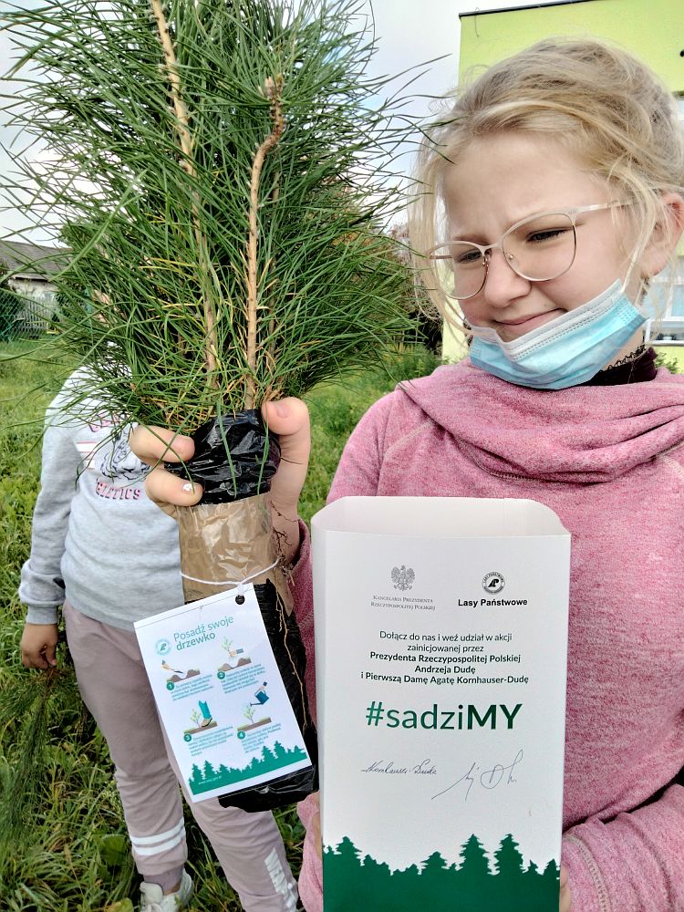 W ramach akcji zainicjowanej przez Prezydenta Rzeczypospolitej Polskiej Andrzeja Dudę #sadziMY delegacja uczniów klasy V wraz z wychowawcą p. I. Budera udali się po sadzonki do Nadleśnictwa. Ta mała sadzonka to początek wielkiej przygody. Wyrosłe z niej drzewo w ciągu swojego życia zapewni nam tlen, oczyści powietrze, złagodzi zmiany klimatu, stanie się siedliskiem wielu organizmów, a w przyszłości drewno z niego powstałe może stworzyć komuś dom. W ramach tej akcji uczniowie szkoły część sadzonek posadzili na placu szkolnym. Niektórzy uczniowie posadzą również sadzonki w pobliżu swoich domów.