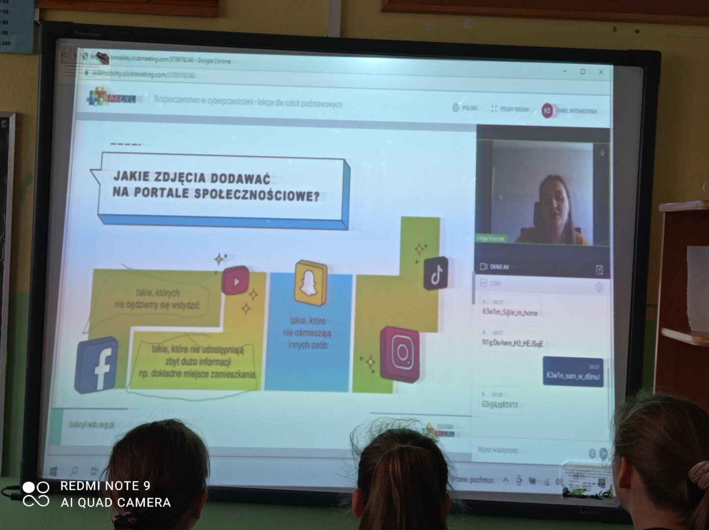 W ramach realizacji programu Bakcyl uczniowie klasy V wzięli udział w lekcji online „Bezpieczeństwo w cyberprzestrzeni” prowadzoną przez p. Kingę Kruczek – wolontariusza programu, eksperta w zakresie bankowości. W czasie zajęć uczniowie dowiedzieli się, jakie hasła są bezpieczne, które są najbardziej popularne, a jakich należy unikać, co należy zrobić, aby chronić swoją prywatność i nie narażać się na cyberprzemoc, co zrobić, aby nie paść ofiarą zjawisk tzw. catfishingu i phishingu , dlaczego konto prywatne jest bezpieczniejsze, co zrobić, aby nasz smartfon był bezpieczny i jak zachować się w sytuacji, kiedy padniemy ofiarą cyberprzemocy. Zajęcia były dla uczniów encyklopedią codziennie przydatnej wiedzy dla osób korzystających ze smartfona,  komputera oraz z mediów społecznościowych.