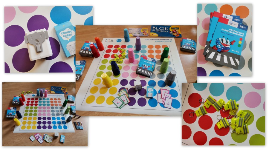 W ramach projektu szkoła otrzymała następujące pomoce: robot Genibot, mata do kodowania wraz z kubeczkami, zestaw materiałów plastycznych, zeszyty z zadaniami dla uczniów, odblaski.
