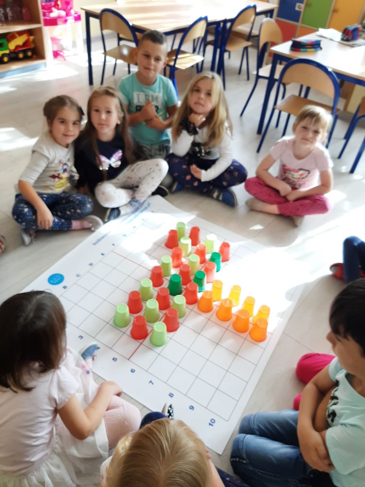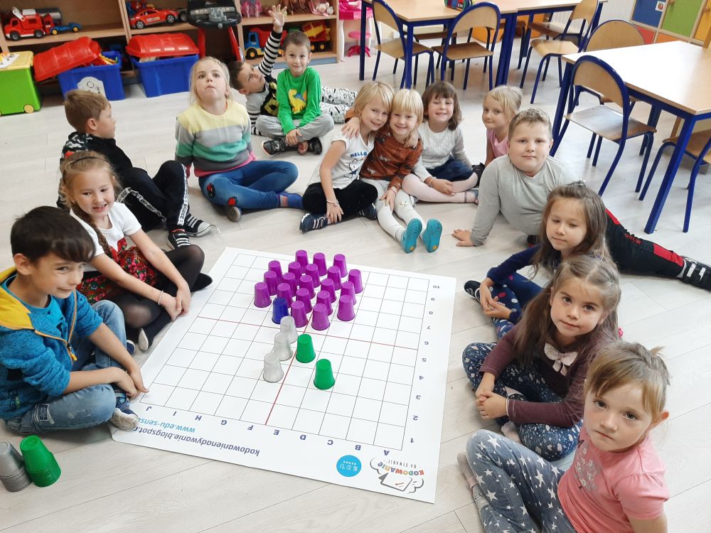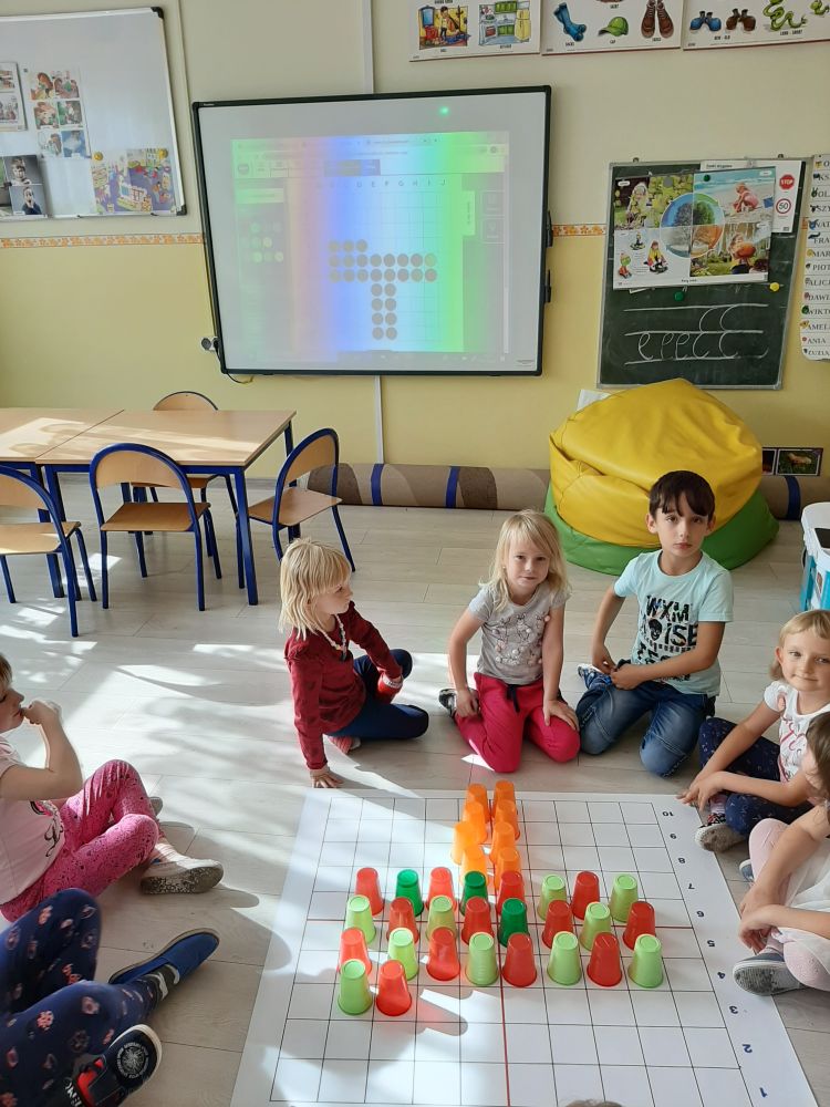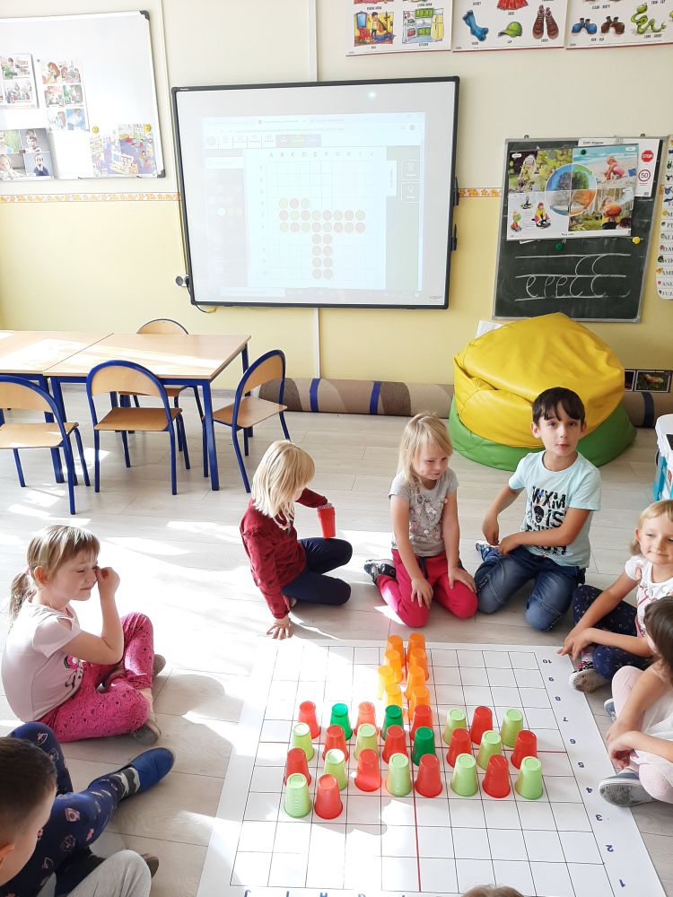Na przełomie września i października przedszkolaki po raz pierwszy wzięły udział w wyzwaniu CAŁA POLSKA PROGRAMUJE. Na zajęciach realizowano scenariusze zaproponowane przez autorów projektu Uczymy Dzieci Programować. Wykorzystane zostały kolorowe kubeczki, mata do kodowania oraz materiały pomocnicze w postaci kolorowych obrazków. Założeniem wyzwania było pokazanie, że nauka programowania nie musi być nudna, trudna ani nie musi odbywać się wyłącznie w pracowni komputerowej. Celem programu jest stopniowe i odpowiedzialne wprowadzanie dzieci w cyfrowy świat, świadome, czynne i twórcze korzystanie z nowoczesnych technologii.