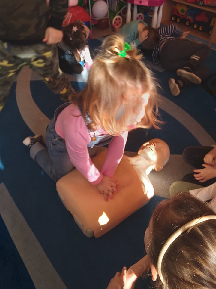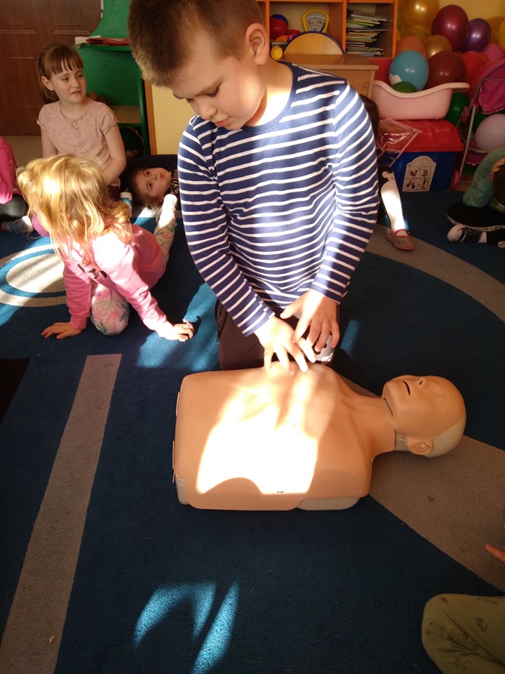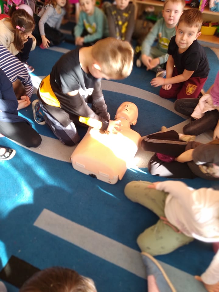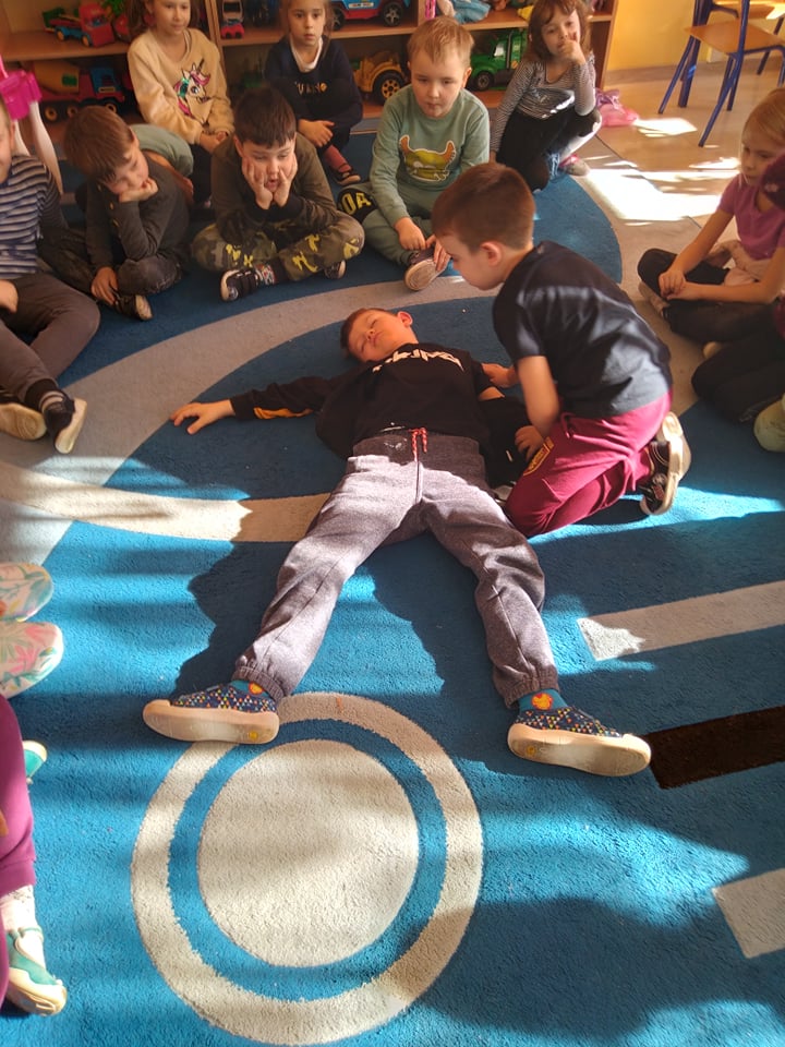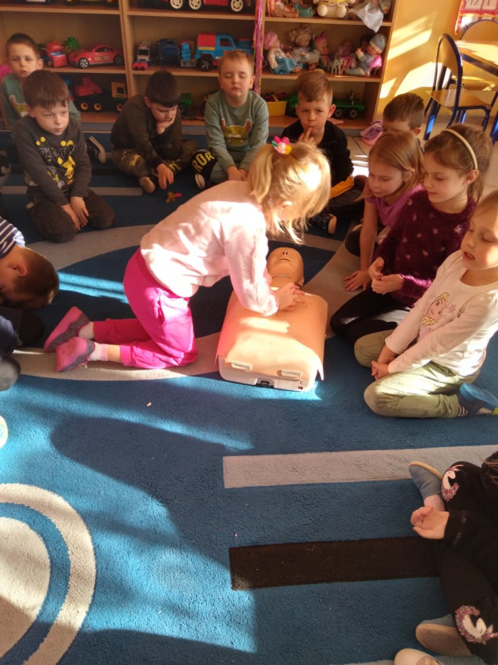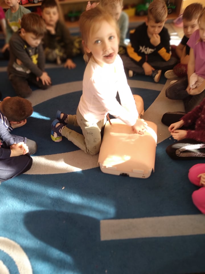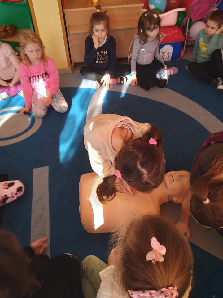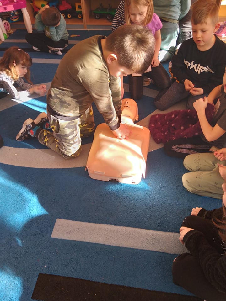 Dnia 14 lutego 2022 r nasze przedszkolaki obchodziły Europejski Dzień numeru alarmowego 112. W naszym przedszkolu w tym szczególnym dniu dzieci utrwaliły sobie wiadomości z zakresu korzystania z numerów alarmowych, w tym numeru 112. Dzieci oglądały ilustracje przedstawiające niebezpieczne sytuacje, opisywały je oraz uzasadniały, które służby ratunkowe należy zawiadomić. Następnie uczyły się w jaki sposób udzielać pierwszej pomocy poszkodowanemu. Duże wrażenie na dzieciach zrobił „fantom”, na którym dzieci ćwiczyły podstawy reanimacji. Zajęcia te miało na celu kształtowanie pozytywnych i bezpiecznych postaw oraz zapoznanie najmłodszych z podstawowymi czynnościami ratowniczymi w wypadku nieobecności osób dorosłych.