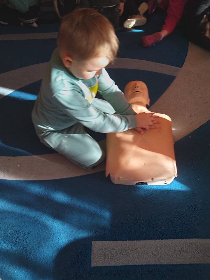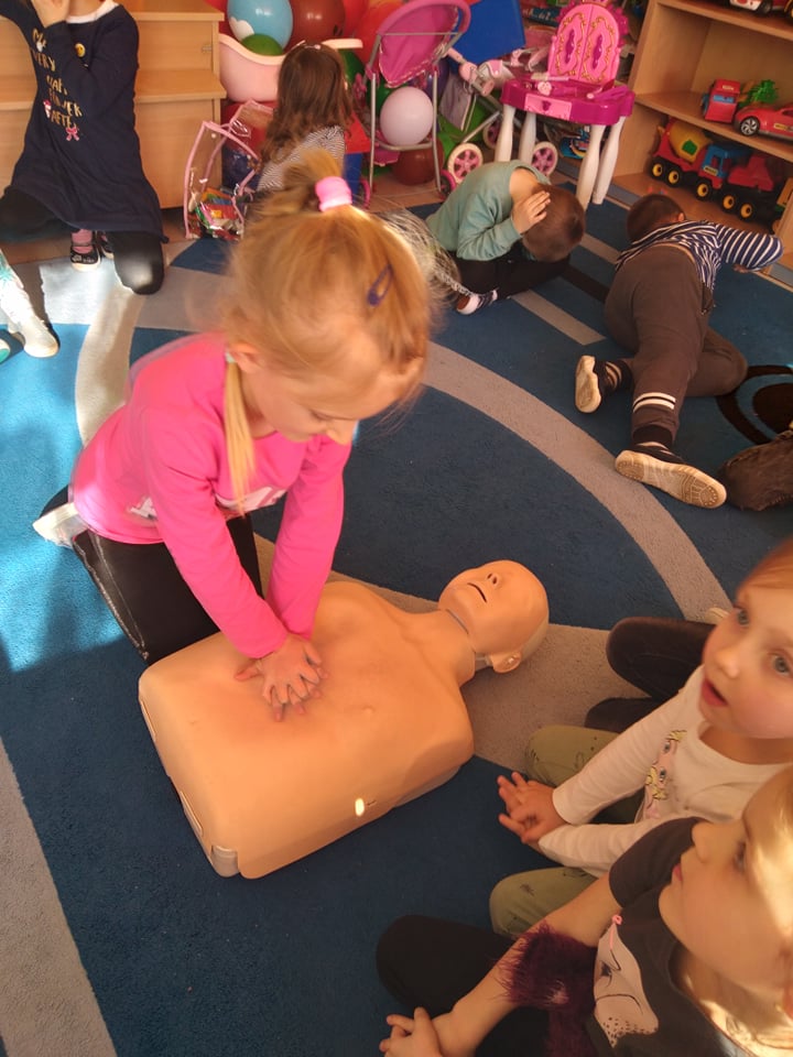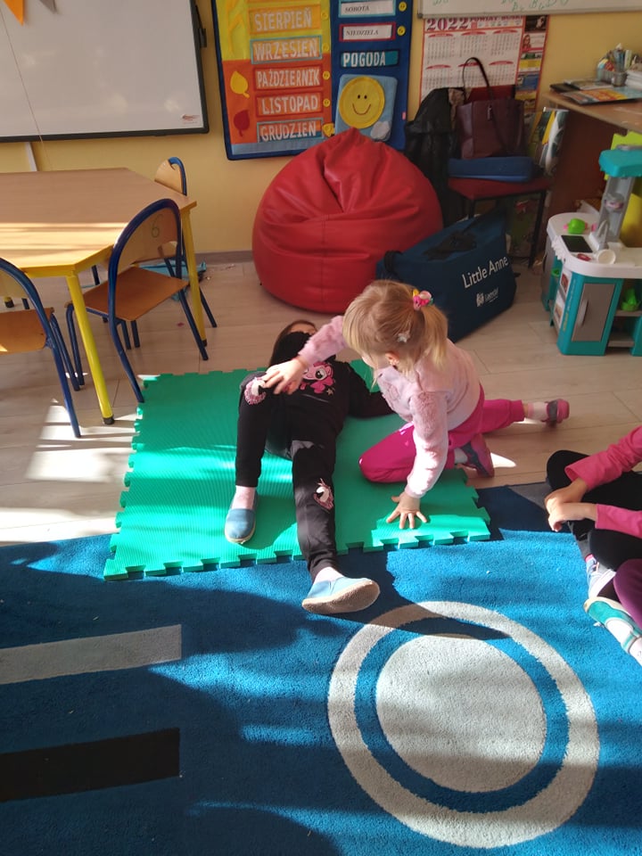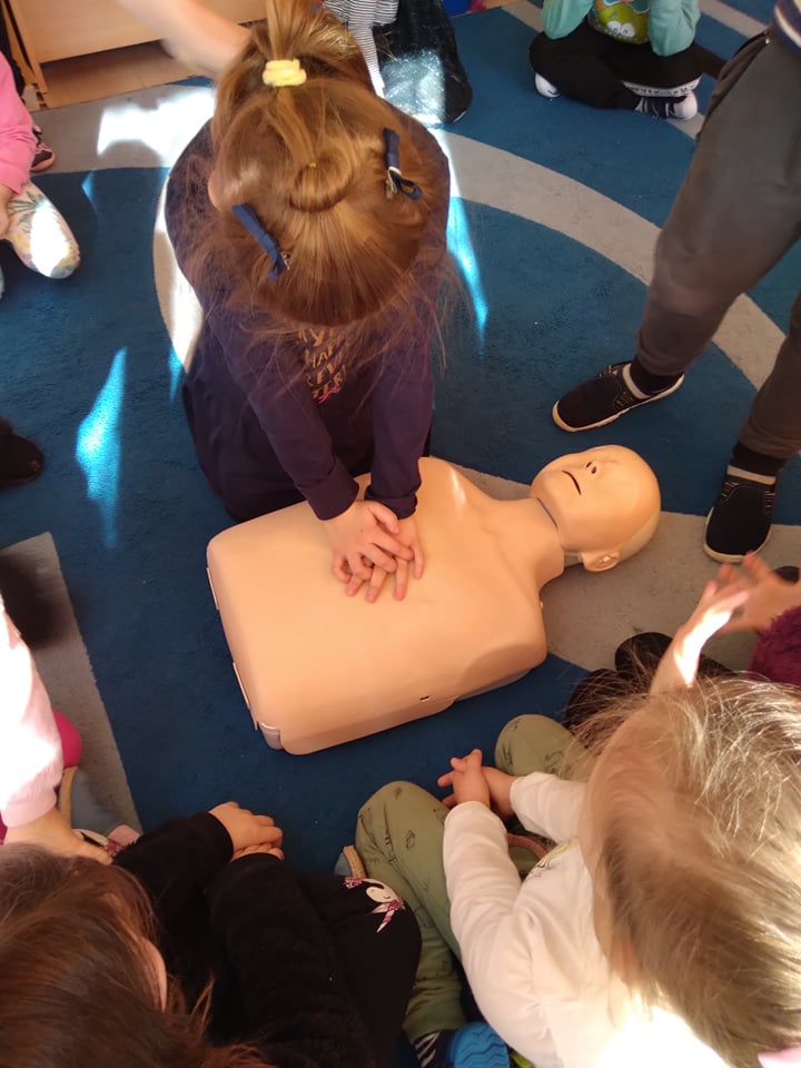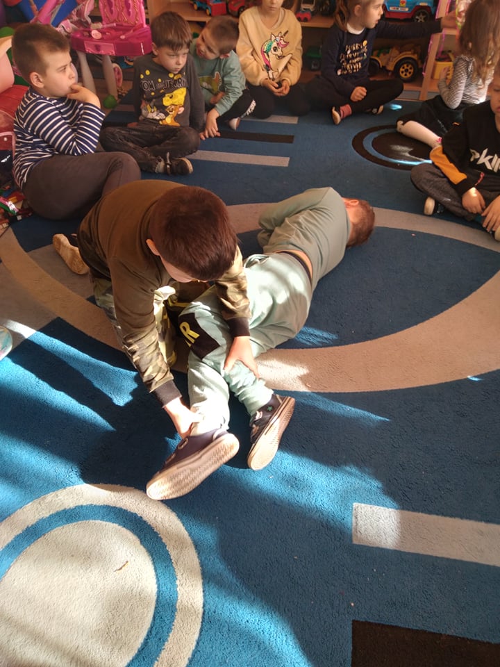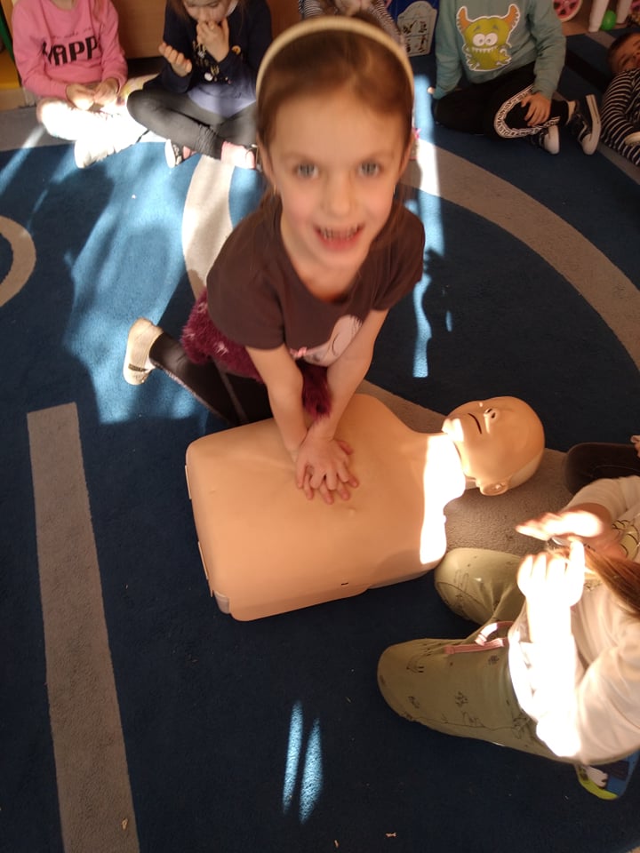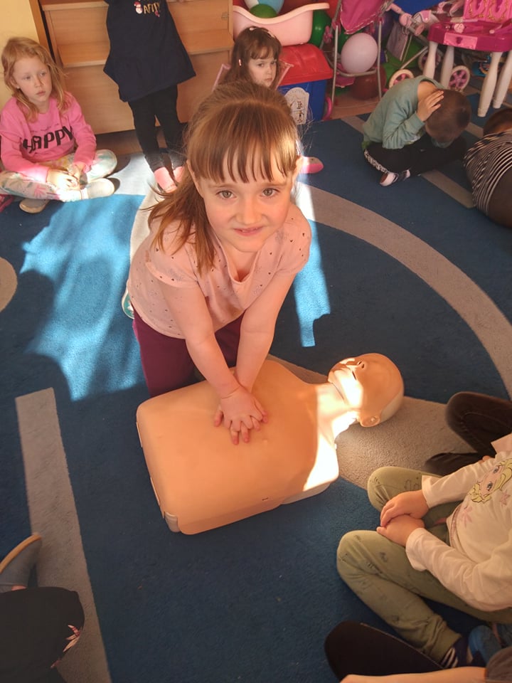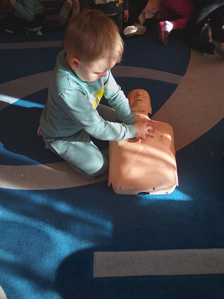Dnia 14 lutego 2022 r nasze przedszkolaki obchodziły Europejski Dzień numeru alarmowego 112. W naszym przedszkolu w tym szczególnym dniu dzieci utrwaliły sobie wiadomości z zakresu korzystania z numerów alarmowych, w tym numeru 112. Dzieci oglądały ilustracje przedstawiające niebezpieczne sytuacje, opisywały je oraz uzasadniały, które służby ratunkowe należy zawiadomić. Następnie uczyły się w jaki sposób udzielać pierwszej pomocy poszkodowanemu. Duże wrażenie na dzieciach zrobił „fantom”, na którym dzieci ćwiczyły podstawy reanimacji. Zajęcia te miało na celu kształtowanie pozytywnych i bezpiecznych postaw oraz zapoznanie najmłodszych z podstawowymi czynnościami ratowniczymi w wypadku nieobecności osób dorosłych.