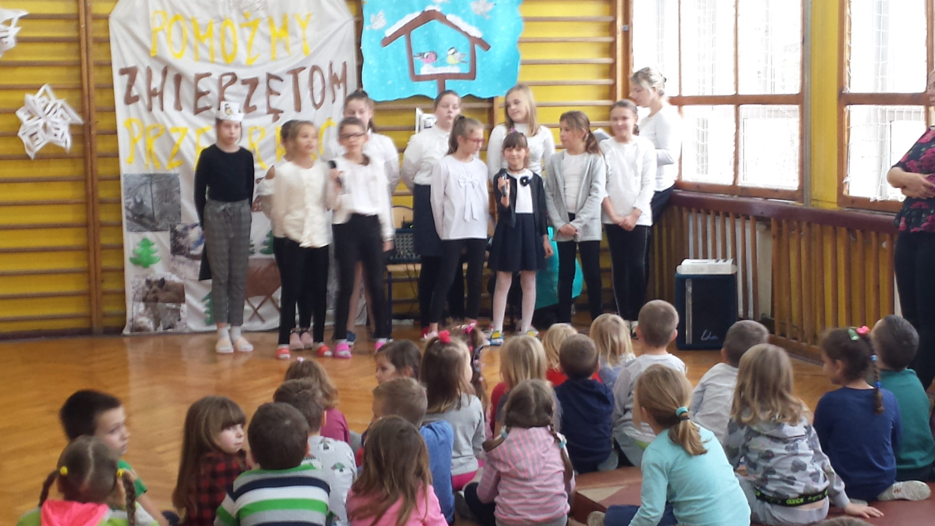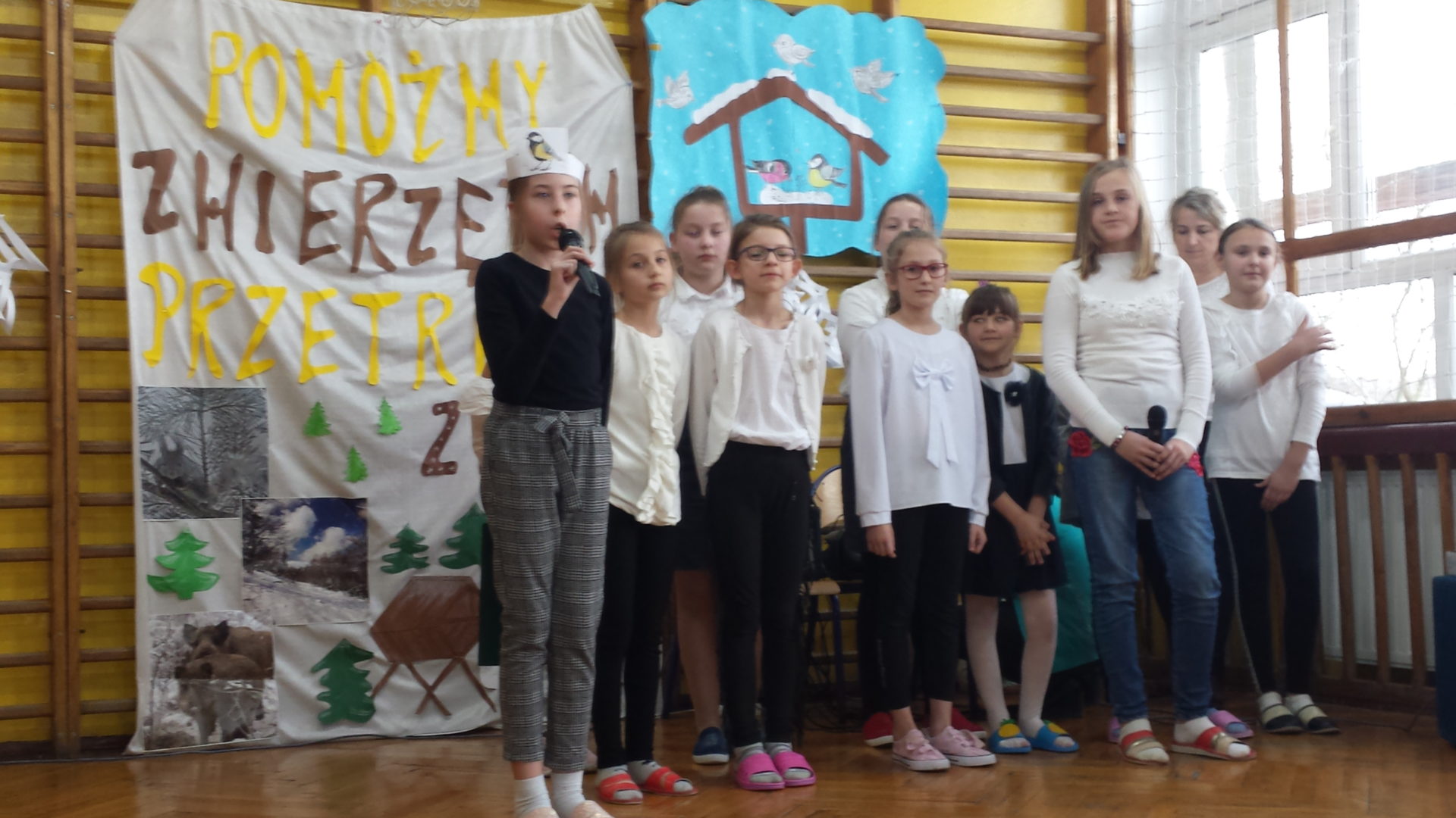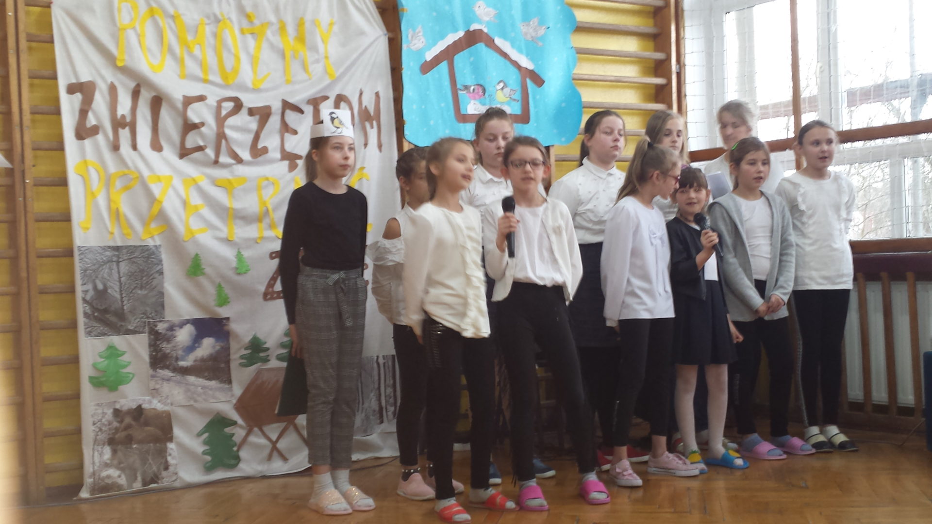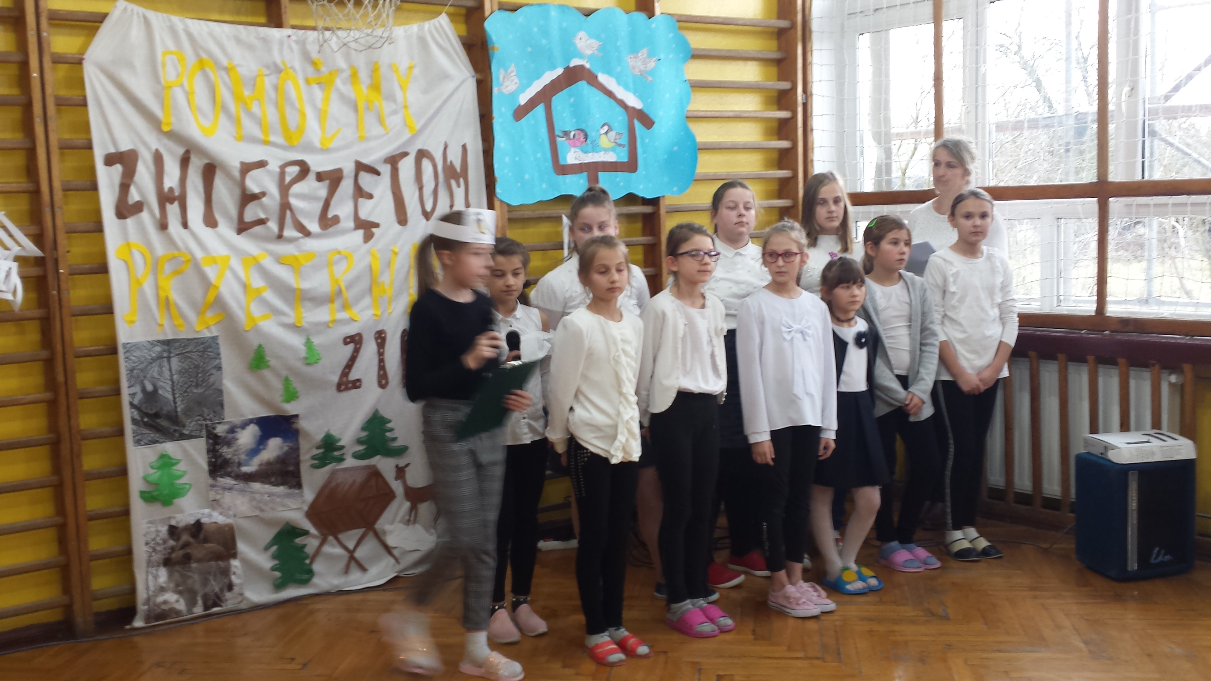 We wtorek, 10 grudnia uczniowie klasy IV i V zaprezentowali apel poświęcony akcji „Pomagamy zwierzętom przetrwać zimę”. Poprzez wiersze, piosenki i swoją postawę, przeprowadzili ważną „lekcję” mającą na celu zrozumienie potrzeby opiekowania się ptakami i zwierzętami ze względu na trudne warunki bytowania.