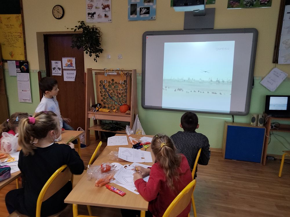 Uczniowie przebywający na świetlicy uczestniczyli w zajęciach prowadzonych przez p. I. Budera dotyczących pomocy zwierzętom. W ramach zajęć obejrzeli prezentację, uzupełniali karty pracy, wycinali i sklejali ptaszki, karmniki. Dowiedzieli się jak należy dokarmiać zwierzęta zimą, wysłuchali piosenek.