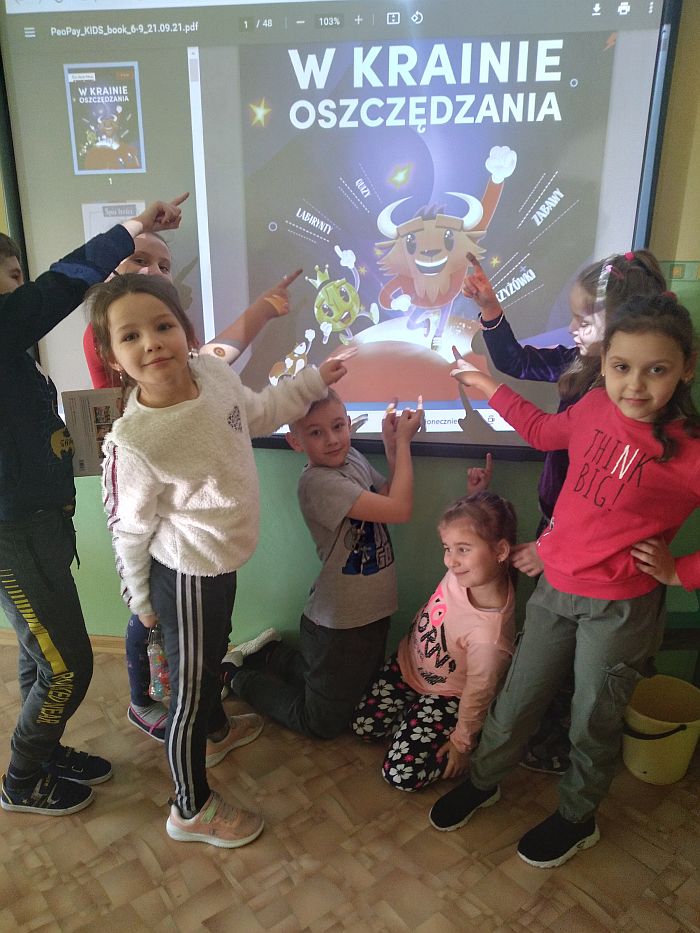 W lutym na planecie Portfelik uczniowie zostali zapoznani z możliwościami zarabiania i koniecznością szanowania pieniędzy, z pracą ludzi, którzy dbają o bezpieczeństwo, utrwalali numery telefonów alarmowych. Dzieci dowiedziały się, jak zarabiają dorośli, poznali rodzaje kart bankomatowych, różnorodne formy oszczędzania. Podczas zajęć kształtowana była świadomość dzieci dotycząca zarabiania pieniędzy oraz potrzeby i wartości pracy. Uczniowie rozwiązywali zadania tekstowe dotyczące liczenia pieniędzy, analizowali powiedzenia związane z pracą.