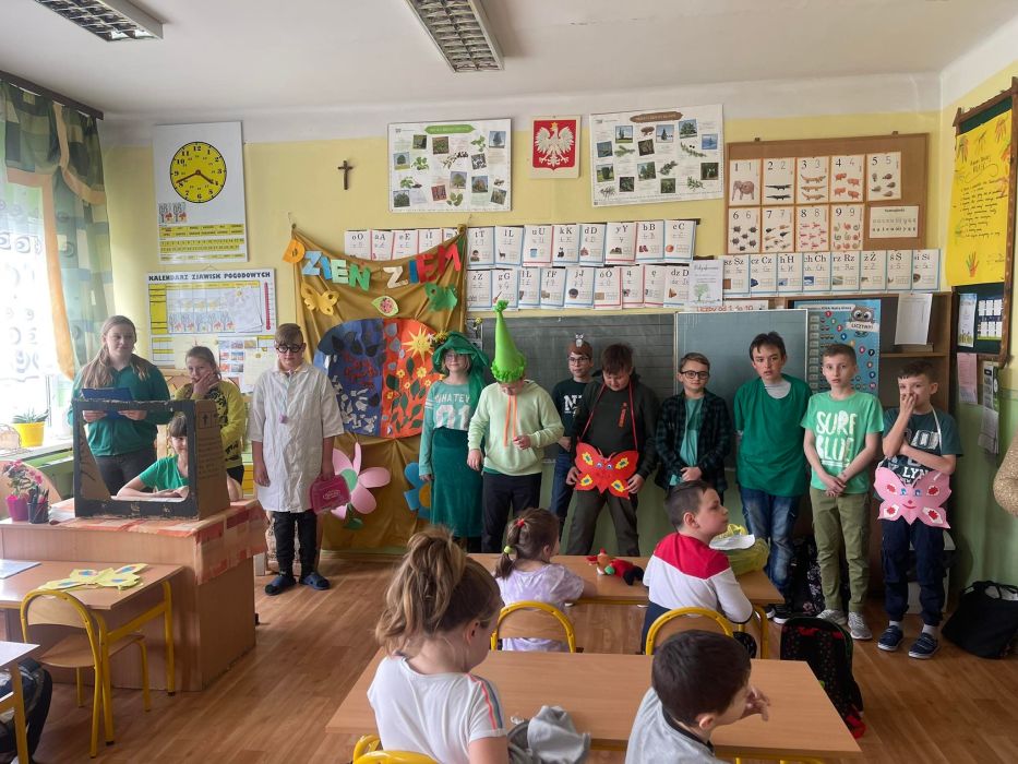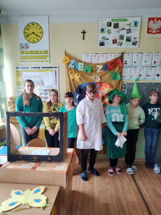 22.04.2022r obchodzimy Dzień Ziemi. Z ideą obchodzonego na całym świecie Dnia Ziemi wystąpił John Connell na konferencji UNESCO dotyczącej środowiska naturalnego w 1969 r. Po raz pierwszy Dzień Ziemi został ogłoszony 21 marca 1970r przez burmistrza San Francisco Josepha Aliotto. Korzenie tego dnia wiążą się z obserwacją przesilenia letniego i promowaniem postaw ekologicznych. Z okazji tego dnia uczniowie klasy V pod kierunkiem p. I. Budera przedstawili przedszkolakom, klasom I-III ważne zagadnienia dotyczące kształtowania postaw ekologicznych w postaci przedstawienia, piosenek, wierszy. Na koniec uczniowie dostali kolorowanki z planetą Ziemią.