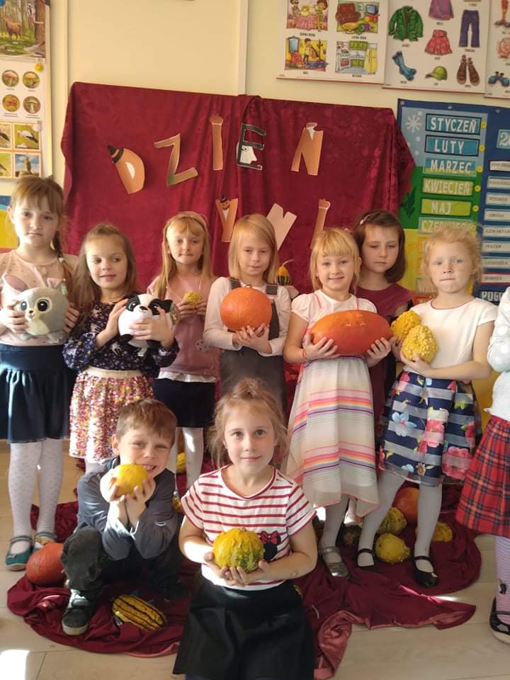 27 października br. w naszym przedszkolu obchodziliśmy Święto Dyni. Królowa Dynia towarzyszyła nam przez cały dzień. Dzieci poznały wartości odżywcze tego warzywa, dowiedziały się jakie potrawy można przyrządzić z dyni, zaglądnęły też do środka i poznały jej budowę. Dzieci z zapałem zabrały się również do prac plastycznych, powstały piękne prace. Ten dzień przyniósł wiele niezapomnianych wrażeń , ciekawości, odkrywania i zabawy co widać na zdjęciach poniżej.