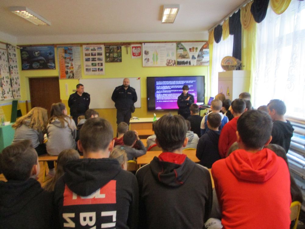 Uczniowie naszej szkoły wzięli udział w spotkaniu z przedstawicielem Policji, które odbyło się w ramach projektu „Szybuj bezpiecznie w Internetowej chmurze”. Podczas prelekcji funkcjonariusze zwrócili uwagę na tematykę bezpieczeństwa cyfrowego. Uczniowie mieli możliwość przypomnienia sobie najważniejszych zasad związanych z prawidłowym zachowaniem w sieci.