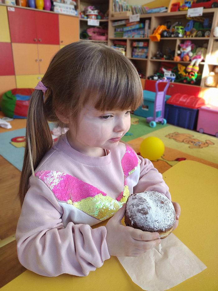 Najważniejszym akcentem tłustego czwartku są pączki. Oczywiście nie odbyło się bez ich degustacji w naszym przedszkolu. Wszyscy zajadali się słodkimi pysznościami. Była to okazja do świetnej zabawy, ale także do przypomnieniami i kultywowania naszych narodowych tradycji i zwyczajów.