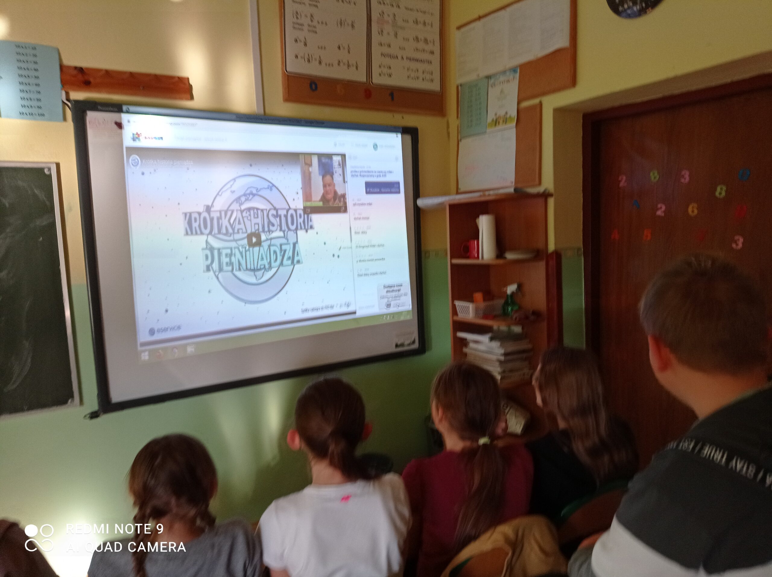 W ramach programu Bankowcy dla Edukacji Finansowej Dzieci i Młodzieży BAKCYL uczniowie klasy VI wzięli udział w lekcji online pt. „Twoje pieniądze”. Zajęcia dotyczyły historii pieniądza, budżetu, dochodów, wydatków stałych, zmiennych i opcjonalnych, funduszu bezpieczeństwa. Uczniowie przekonali się, że oszczędzanie warto planować, a dzięki systematycznym oszczędnościom możemy: zrealizować zaplanowany duży zakup lub inwestycję, być przygotowanym na różne wydatki, czuć się bezpieczniej i swobodniej planując przyszłość. Wideokonferencję prowadził pan Adam Życzkowski, wolontariusz programu BAKCYL – ekspert z zakresu bankowości.
