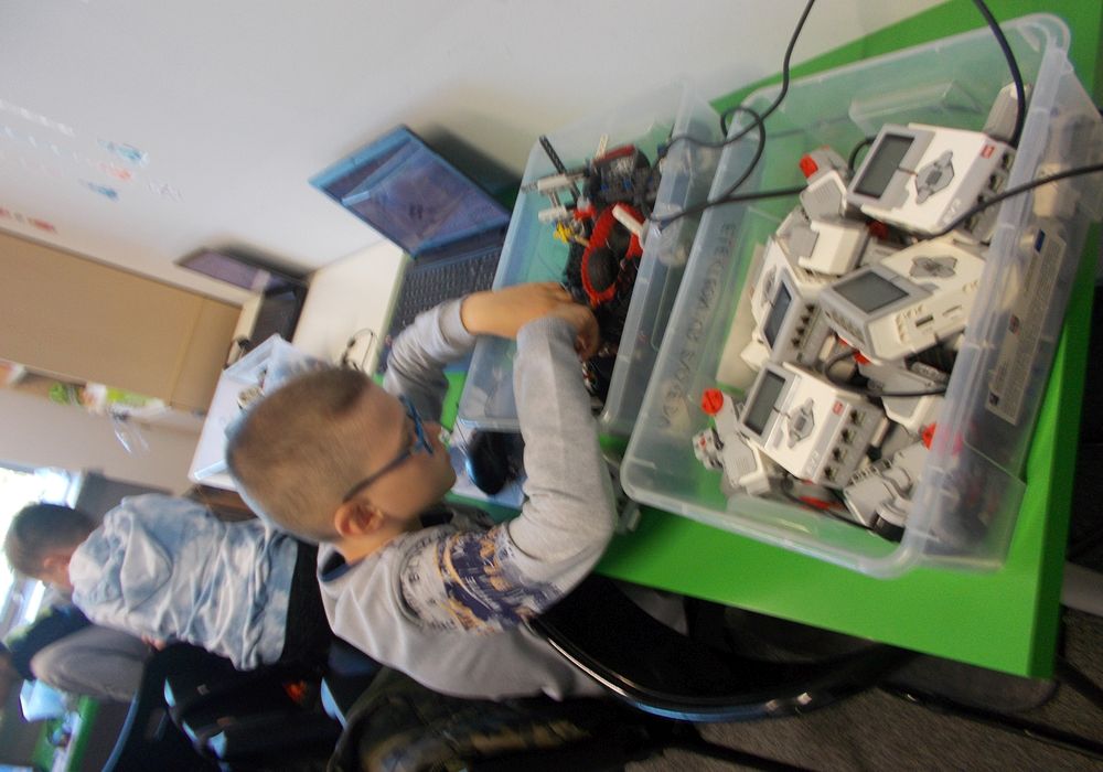 W ramach realizowanego w naszej szkole projektu grantowego Centrum Mistrzostwa Informatycznego, grupa uczniów  z klas IV – VI uczestniczyła w warsztatach robotyki w Kieleckim Parku Technologicznym oraz zwiedziła Regionalne Centrum Naukowo-Technologiczne w Podzamczu. Na zajęciach z robotyki uczestnicy koła informatycznego budowali ze specjalnych, edukacyjnych klocków lego roboty, a następnie programowali je, by działały. Wszystkim uczestnikom udało się wprowadzić w ruch swoje roboty. Już po dwóch godzinach warsztatów, po podłodze pracowni, samodzielnie, choć nie bez drobnych problemów, poruszały się rozmaite roboty. Zajęcia z robotyki w ciekawy sposób wprowadziły uczniów do świata cybernetyki. Potem uczestnicy  udali się do Centrum Nauki Leonarda da Vinci w Podzamczu, gdzie zostali wciągnięci w fascynujący świat nauki, techniki i historii. Przechadzając się po Centrum, gdzie znajdują się makiety dzieł Leonarda uczestnicy rozwiązywali zagadki logiczne, układali  figury, obserwowali złudzenia optyczne oraz mieli możliwość przeprowadzenia różnych eksperymentów. Wszyscy dobrze się bawili, wciągnięci w twórczy klimat przeżywali i cieszyli  z rozwiązanych zadań.