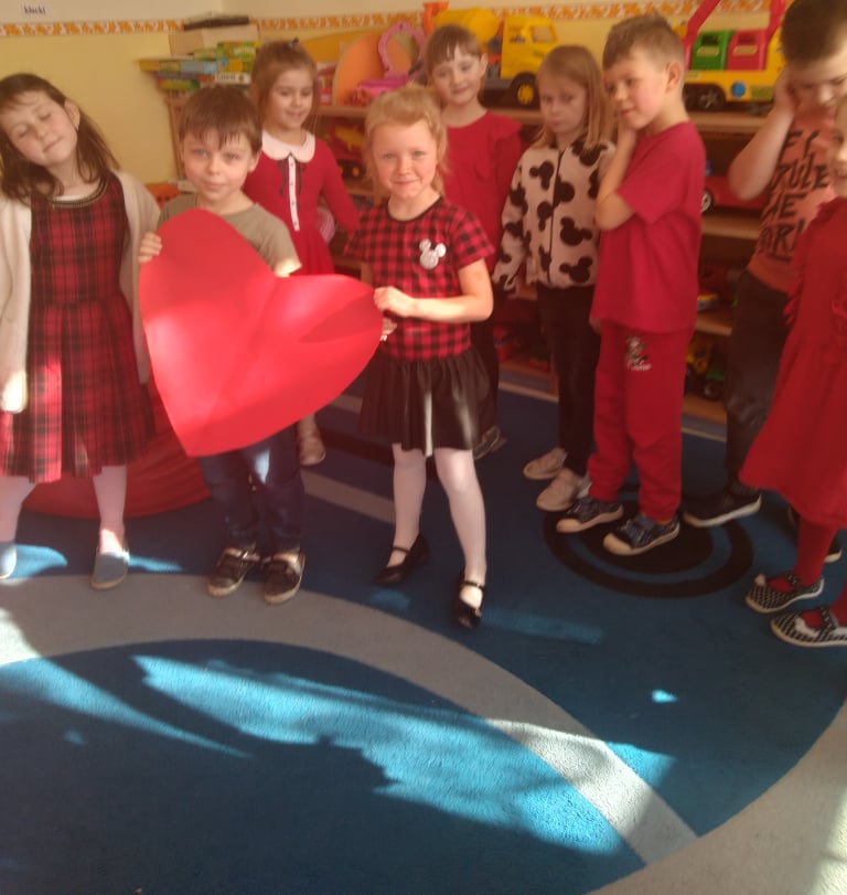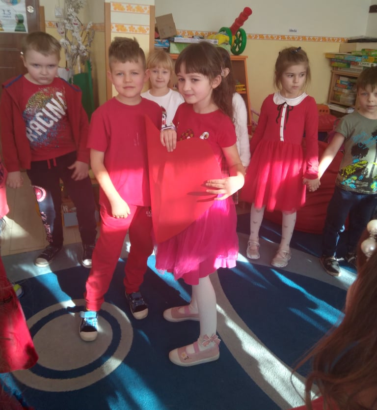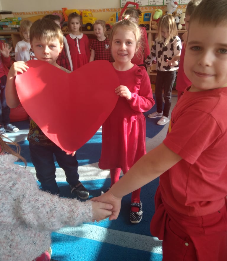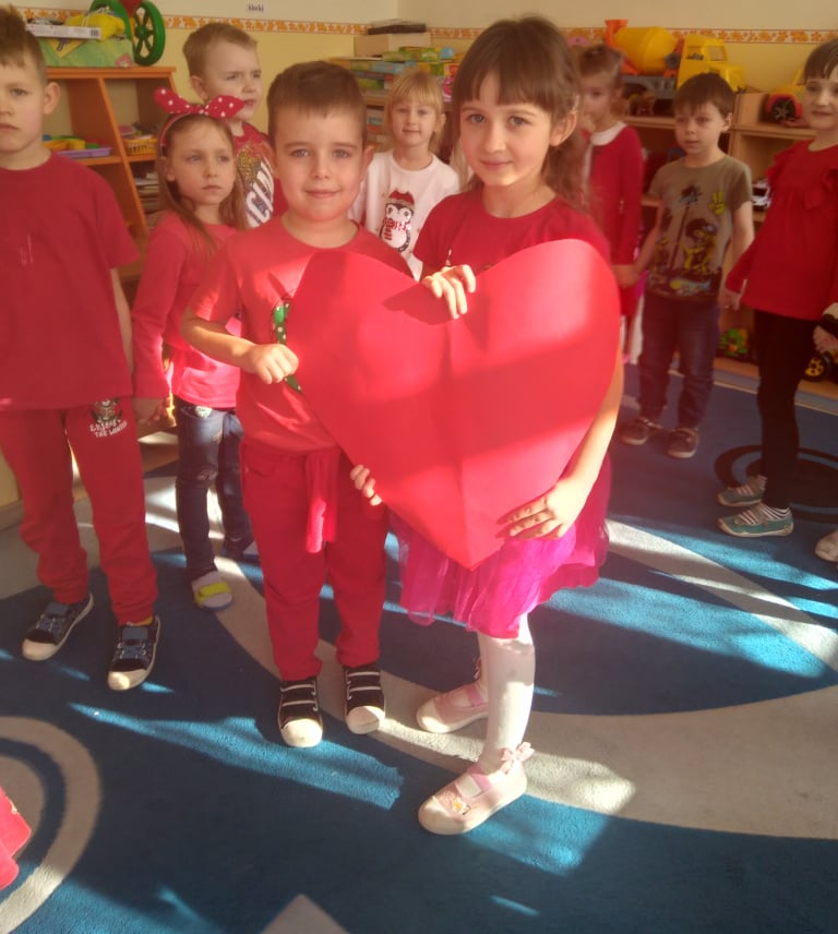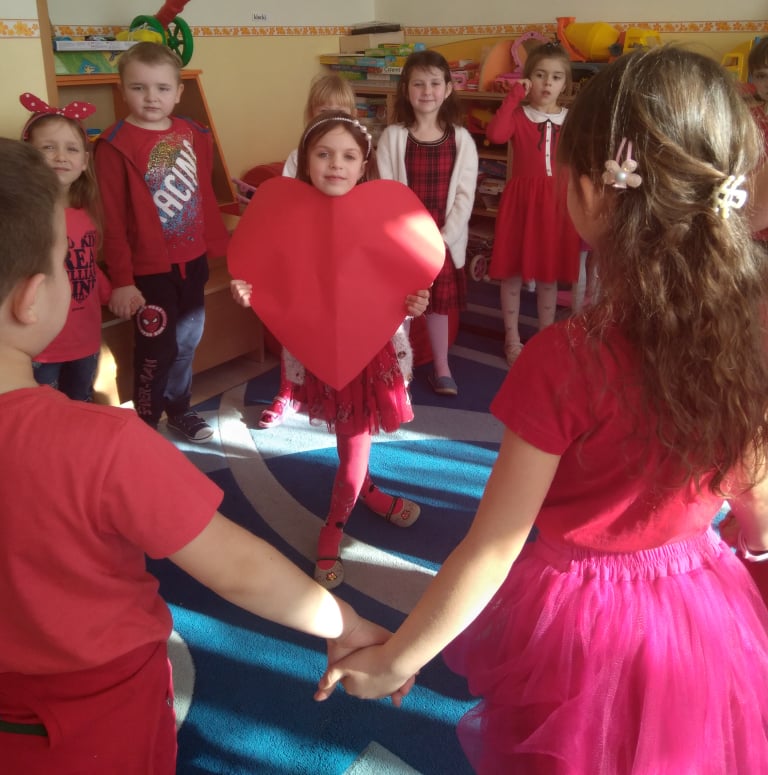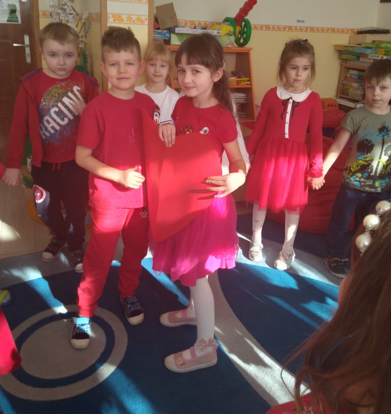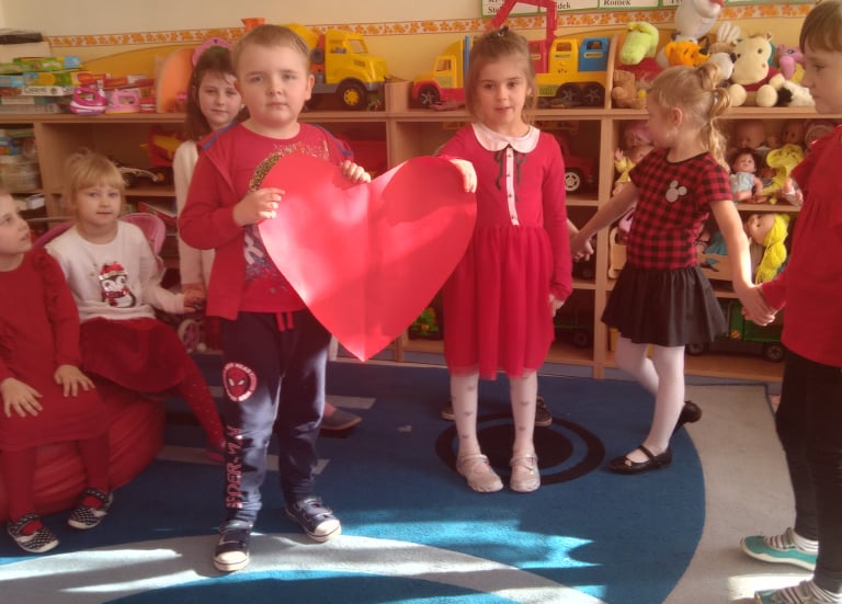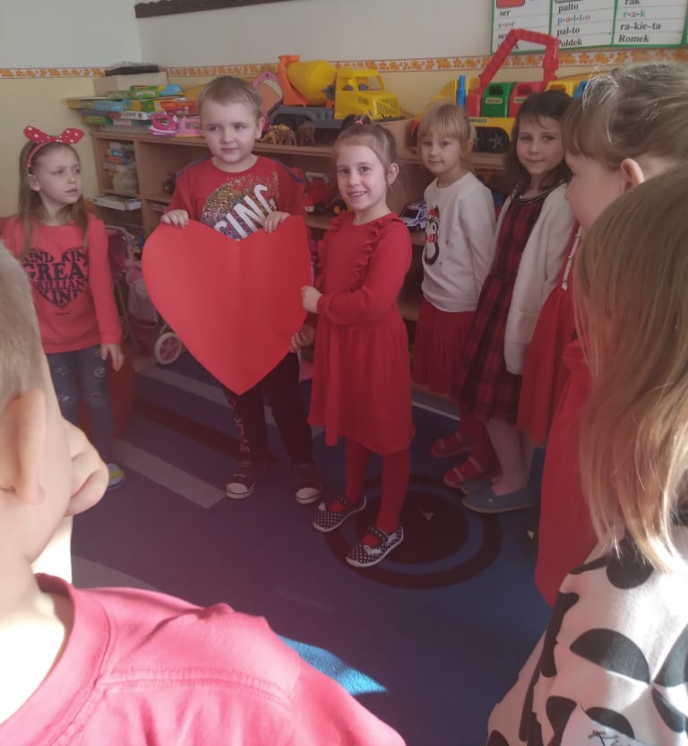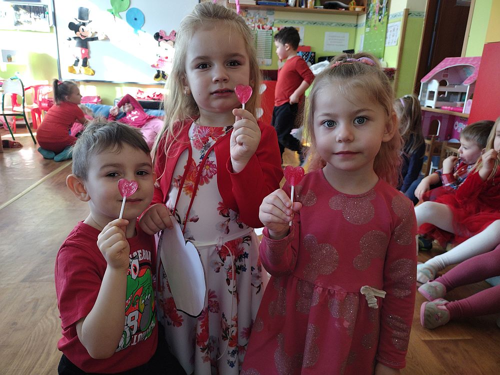 W poniedziałek 14 lutego obchodziliśmy w naszym przedszkolu „Walentynki„. Dzieci ubrały się tego dnia na czerwono, salę i gazetkę udekorowano czerwonymi serduszkami. Przedszkolaki zapoznały się z tradycją Walentynek, rozmawiały o tym jak można okazywać szczęście, przyjaźń, miłość bliskim osobom nie tylko od święta. Bawiły się przy piosenkach, rozwiązywały zagadki, nie zabrakło również słodkiego upominku.