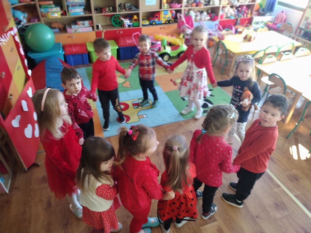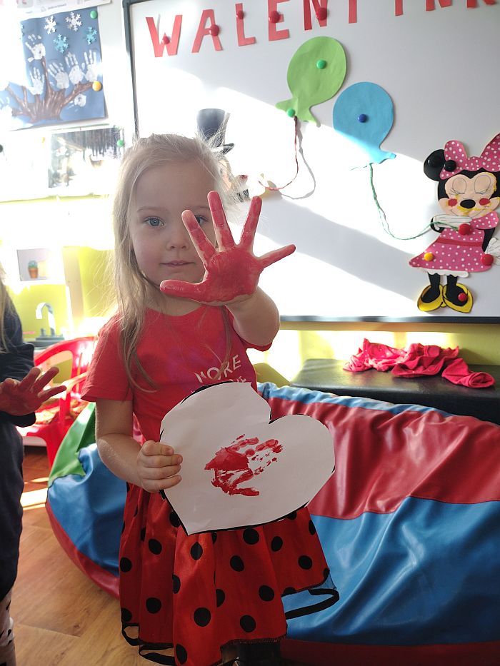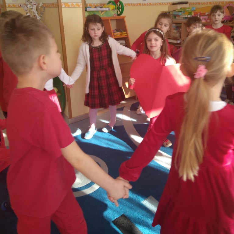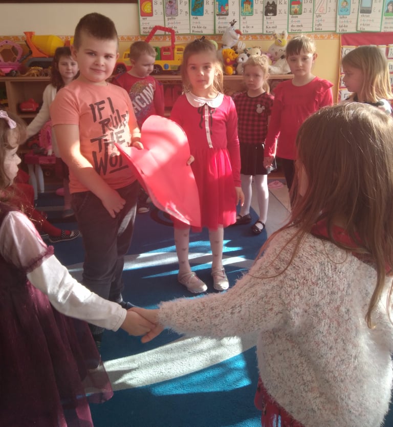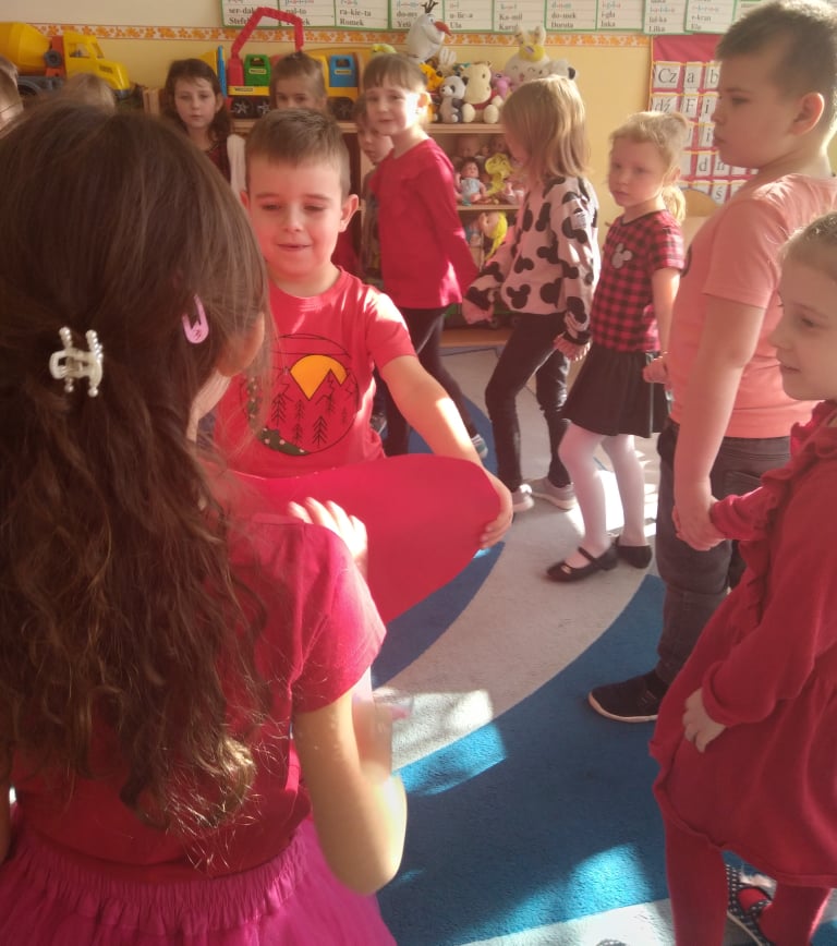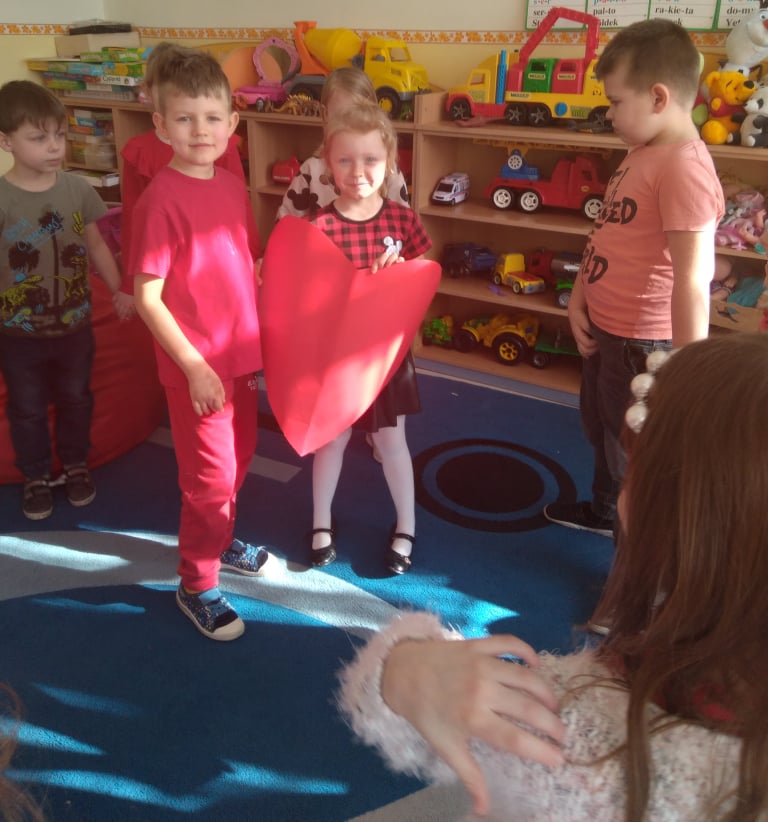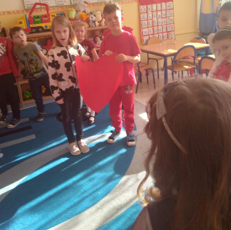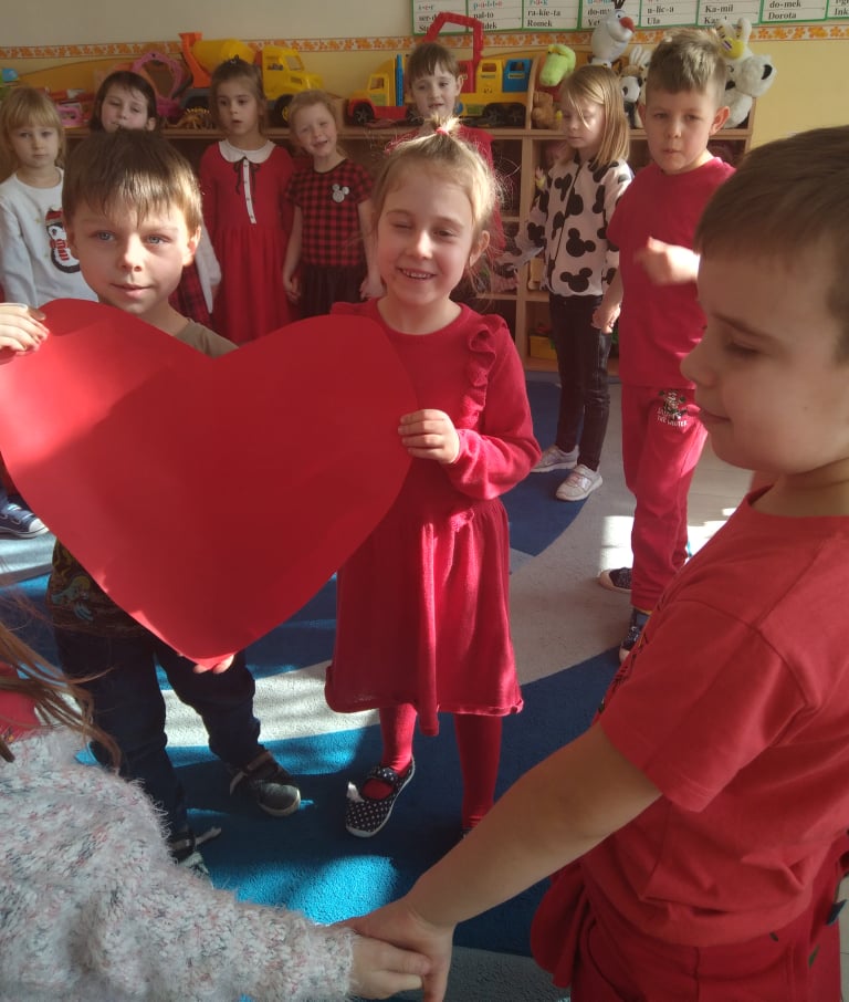 W poniedziałek 14 lutego obchodziliśmy w naszym przedszkolu „Walentynki„. Dzieci ubrały się tego dnia na czerwono, salę i gazetkę udekorowano czerwonymi serduszkami. Przedszkolaki zapoznały się z tradycją Walentynek, rozmawiały o tym jak można okazywać szczęście, przyjaźń, miłość bliskim osobom nie tylko od święta. Bawiły się przy piosenkach, rozwiązywały zagadki, nie zabrakło również słodkiego upominku.