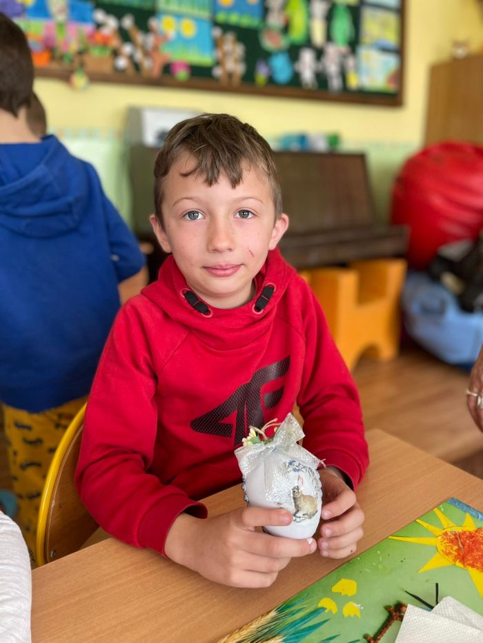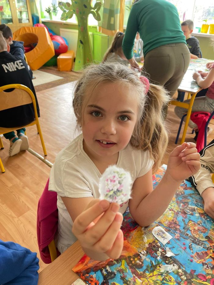 Widać było, że twórcza praca sprawiała dużo przyjemności i wywoływała uśmiech na twarzach. Wykonane przez uczniów ozdoby wielkanocne wyglądały jak ręcznie malowane.