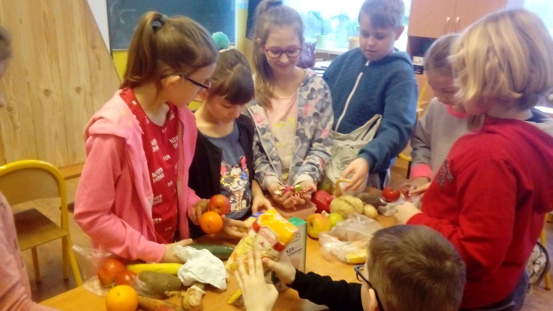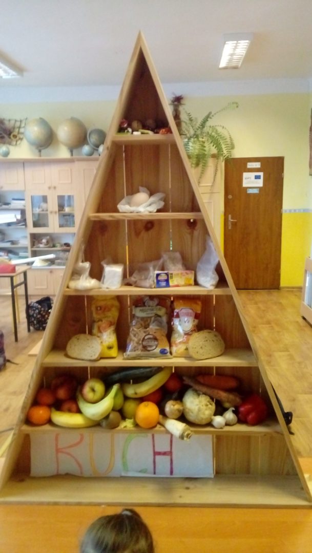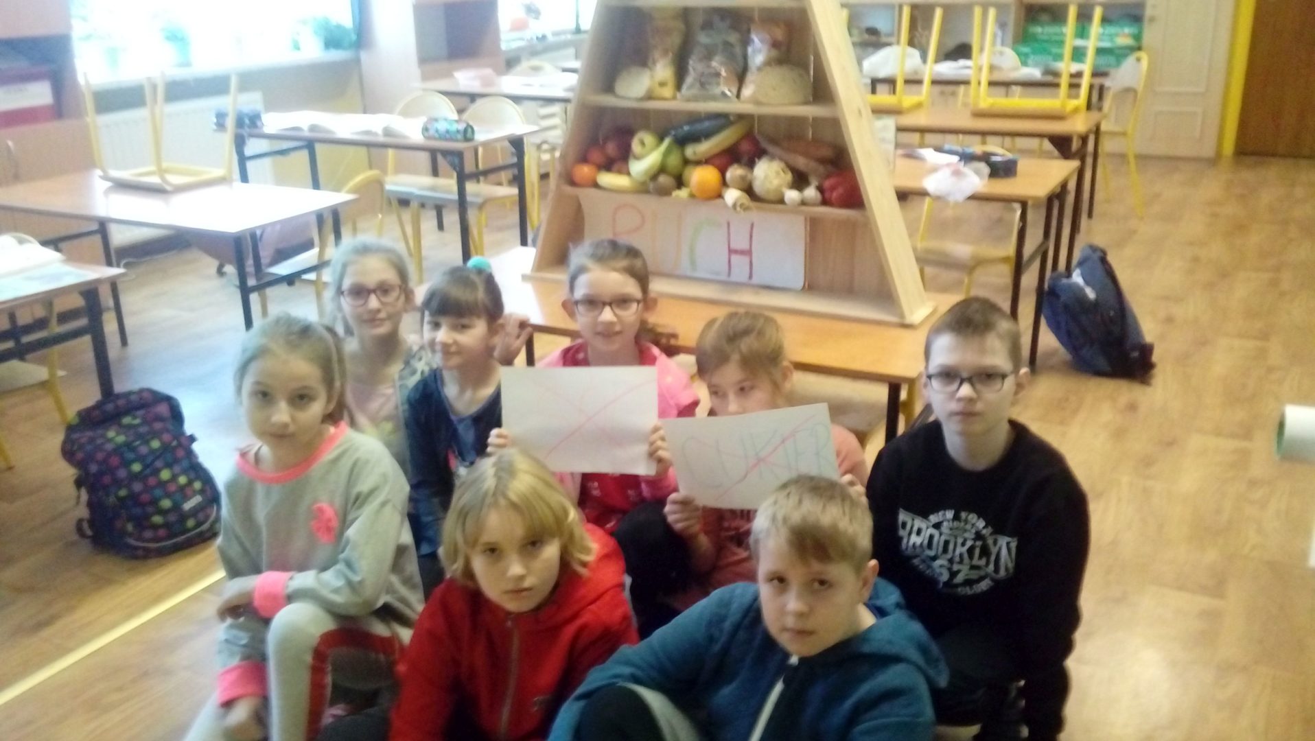 Kształtowanie nawyków żywieniowych jest ważne od najmłodszych lat. W ramach zajęć przyrody uczniowie klasy IV przygotowali piramidę żywienia z naturalnych produktów. Każdy przyniósł jakieś produkty, który następnie zostały przyporządkowane odpowiednim poziomom piramidy. Podczas zajęć dzieci usystematyzowali swoją wiedzę o zasadach zdrowego odżywiania.