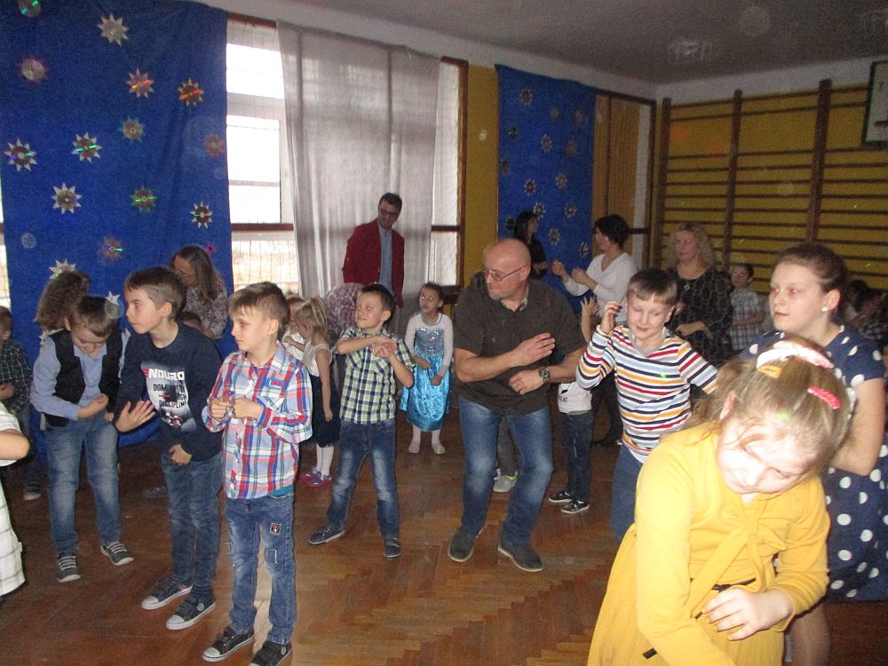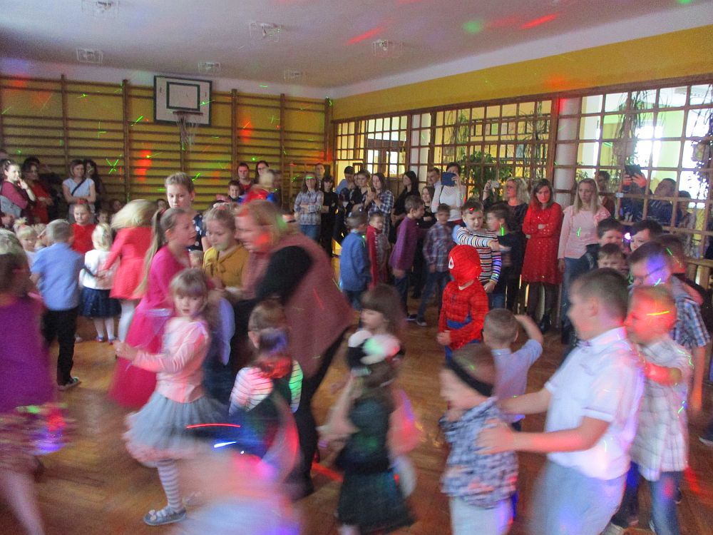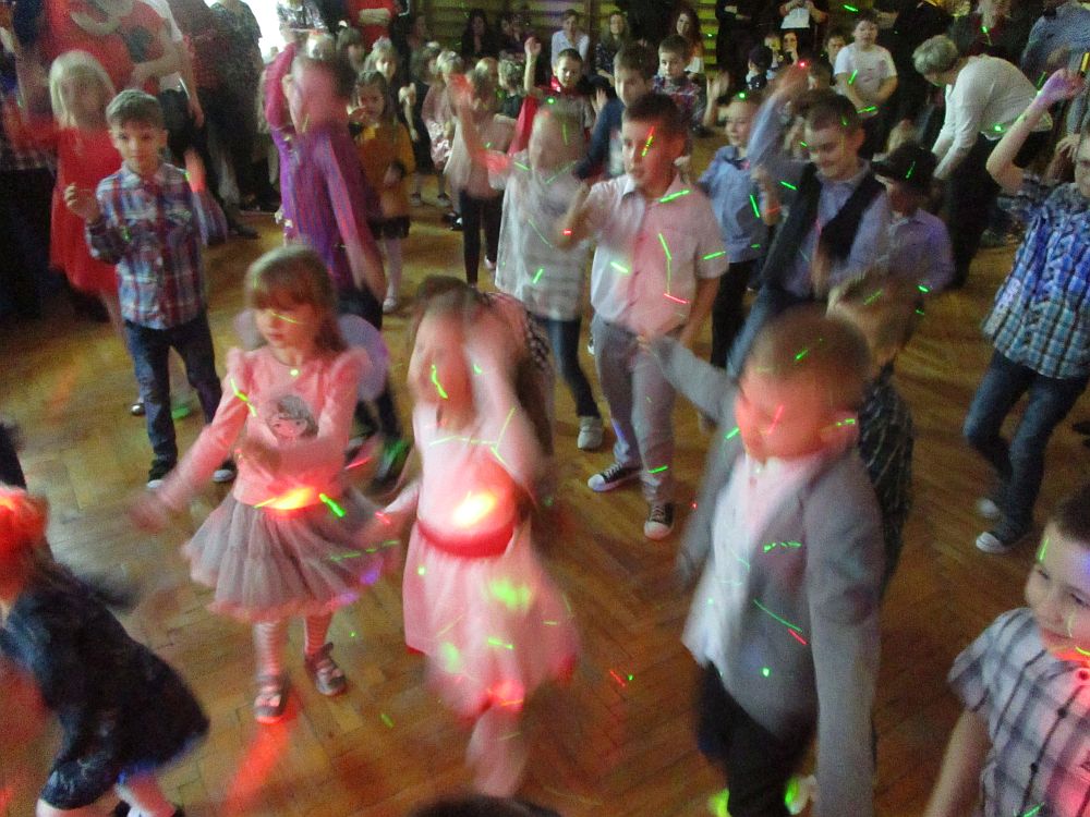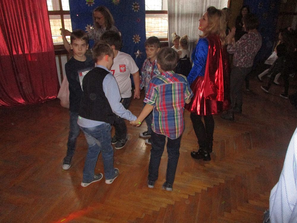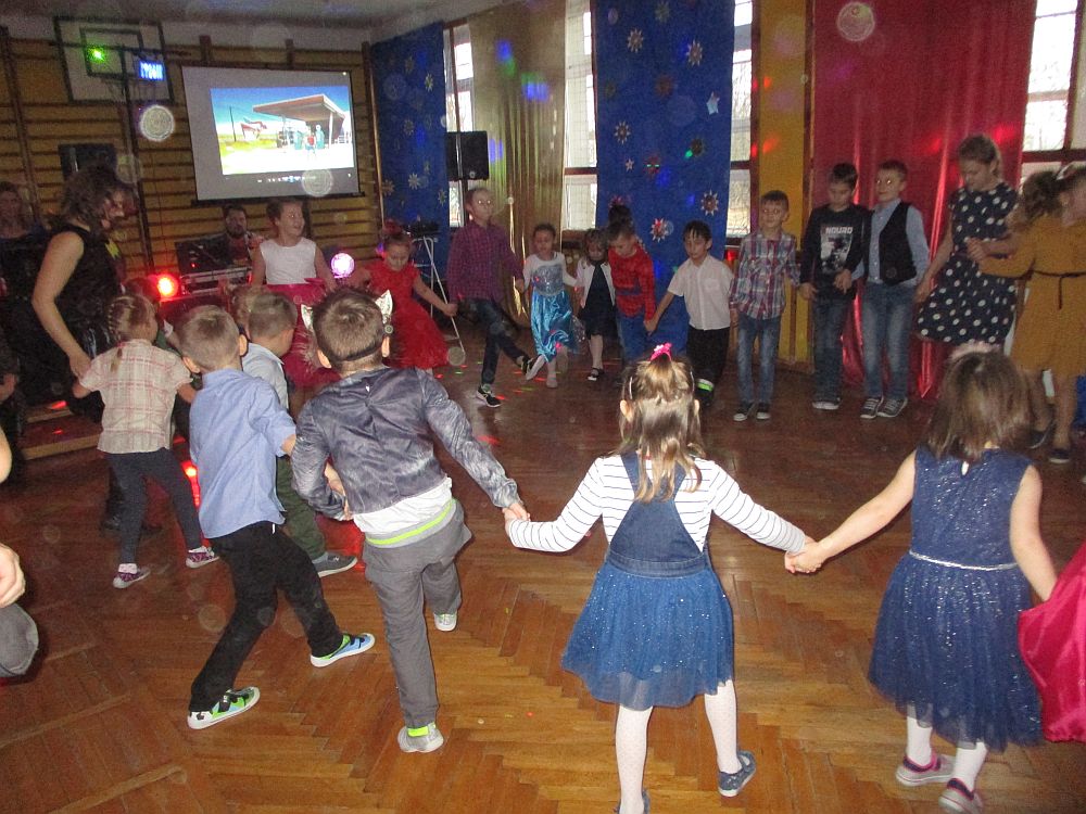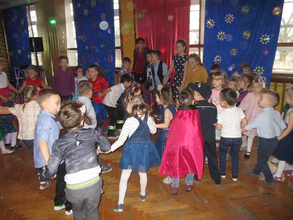 Zabawa choinkowa to jedno z najbardziej oczekiwanych wydarzeń w kalendarzu imprez naszej szkoły. W tym roku zorganizowano ją w niedzielę, 26 stycznia. Gdy tylko popłynęły pierwsze melodie, na parkiet wkroczyli tancerze z klas I – III oraz mali przedszkolacy. Skoczna i wesoła muzyka, która rozbrzmiewała wokół, porywała do tańca. Ogromną frajdą dla maluchów było prowadzenie zabawy choinkowej przez animatorów. Panie „wodzirejki” rozgrzały dzieciaki proponując im ciekawe układy taneczne, rytmiczne gry i zabawy ruchowe. W późniejszych godzinach salę gimnastyczną opanowała starsza grupa uczniów z klas IV – VIII. Dziewczyny i chłopcy z niezmożoną energią bawili się w rytm utworów z aktualnych list przebojów. Królowało „Disco Polo”, ale pojawiły się też mocniejsze rockowe rytmy. Tegoroczna zabawa była naprawdę udana i na długo pozostanie w pamięci uczestników. Po zakończonej choince wszyscy udali się do domów na zasłużone ferie.