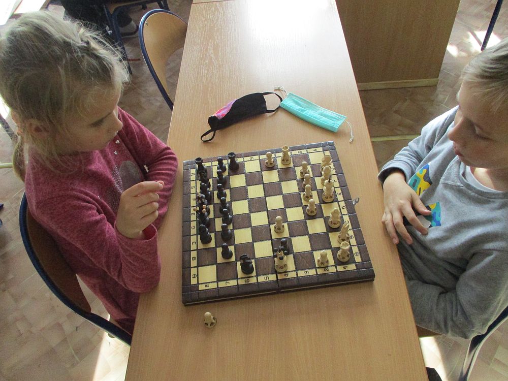W tym roku szkolnym zajęcia szachowe prowadzone są w klasie II i VIII. Uczniowie spotykają się w każdy wtorek, gdzie oprócz nauki jest też zabawa. Spotkania te, to okazja do wymiany własnych opinii i poglądów, nie tylko na temat królewskiej gry. Grając, wykorzystywane są poznane zasady. Uczniowie są skoncentrowani, ale też pełni emocji. Widać je w gestach i na twarzach uczniów.