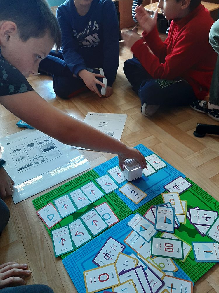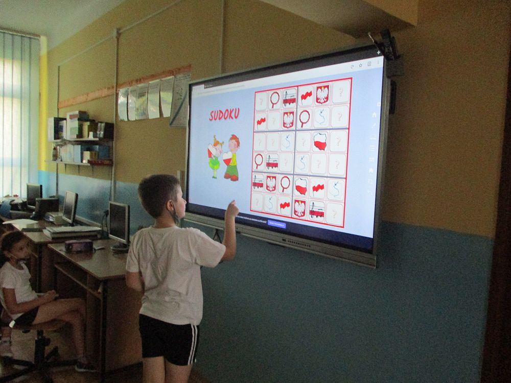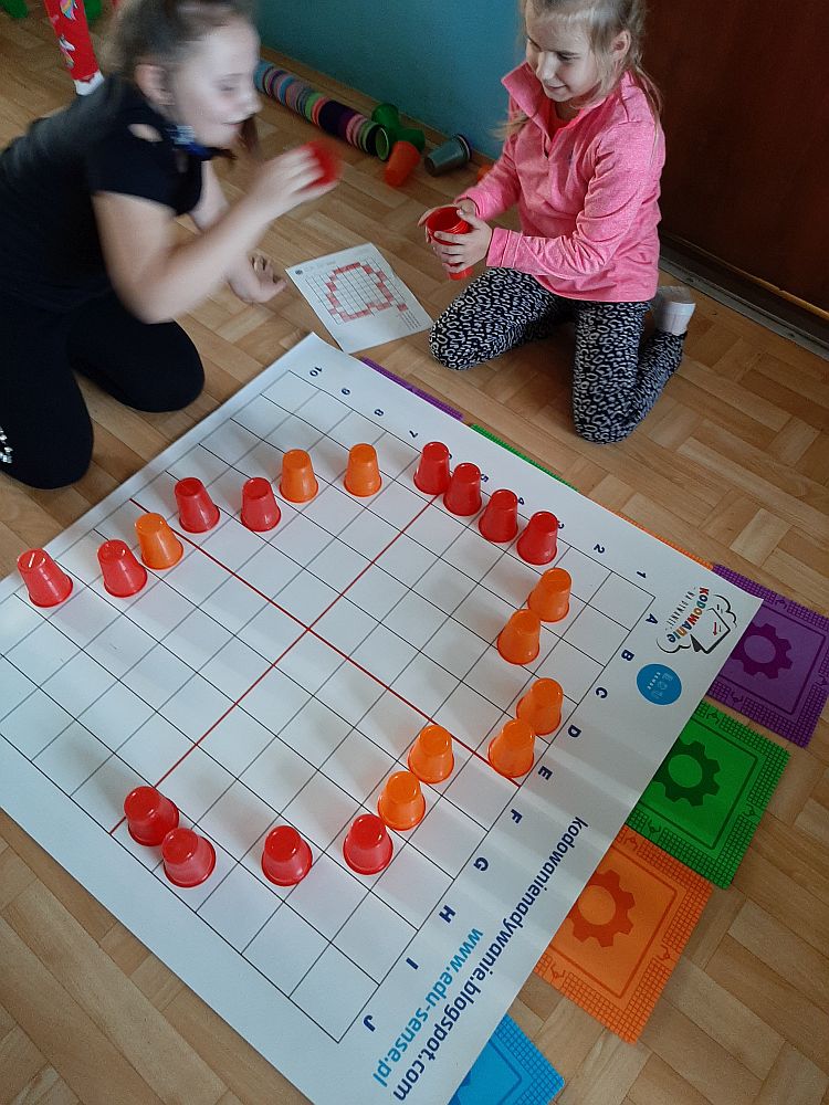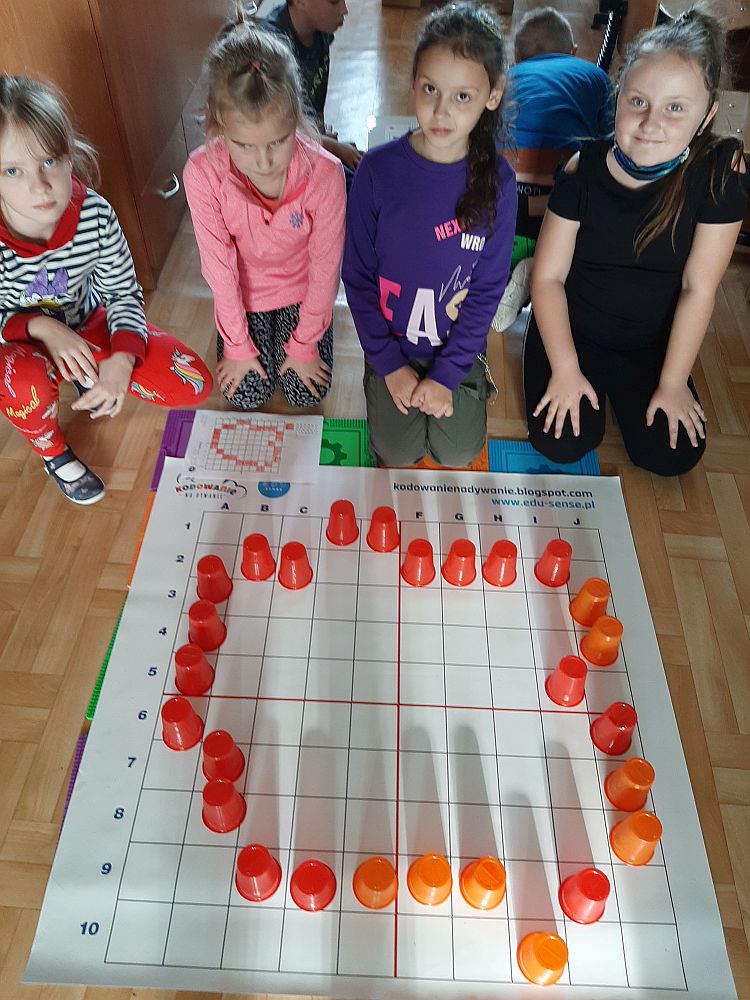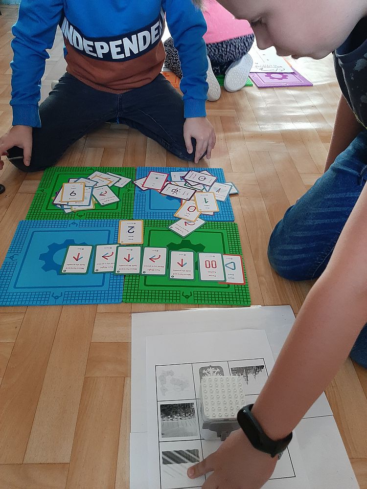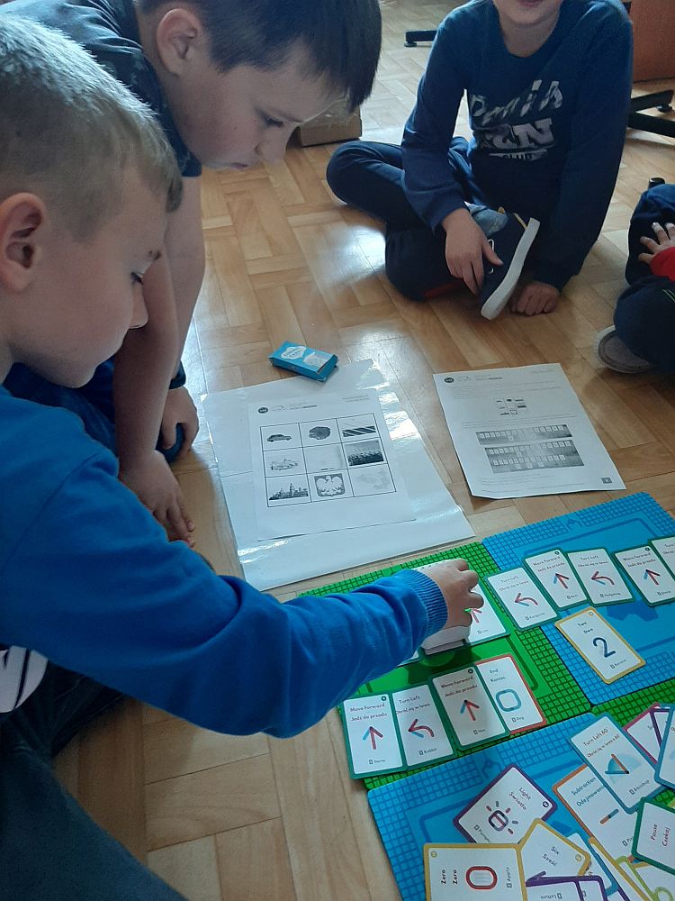 W czwartek, 5 listopada, uczniowie klasy II uczestniczyli w kolejnych zajęciach projektowych związanych z kodowaniem. Tym razem warsztaty dotyczyły symboli narodowych związanych z naszą ojczyzną. Dzieci podczas zajęć rozkodowały napisy związane z POLSKĄ i układały obrazkowe sudoku. Dzieci kodowały na macie z kubeczków, wyznaczały dla ozobotów drogę w kształcie granic Polski i programowały GeniBota w taki sposób, żeby przejechał przez wszystkie obrazki związane z Polską.