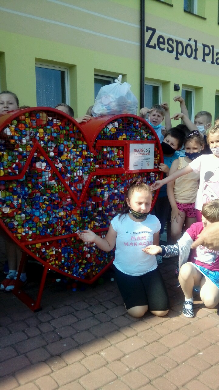 „Nakręć się na pomaganie” – to hasło brzmi w sercach naszych uczniów, którzy zbierali nakrętki i przynosili je do „naszego” serca przed budynkiem szkoły. Dzięki ogromnemu zaangażowaniu uczniów, ich rodziców i nauczycieli udało się w dość szybkim czasie zapełnić całe metalowe serce. Akcja miała na celu uwrażliwienie wszystkich i pokazanie, że pomagać możemy także w ten sposób – zbierając nikomu niepotrzebne nakrętki.